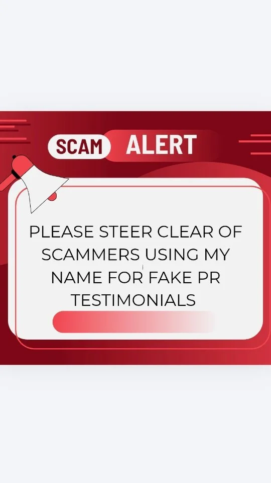 It has come to my attention that my name and a fake email address are being used to promote a bogus PR company.